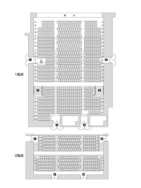 座席図を見ても分かるとおり、1階席の方は693席と数が多く2階席は248席しかありません。